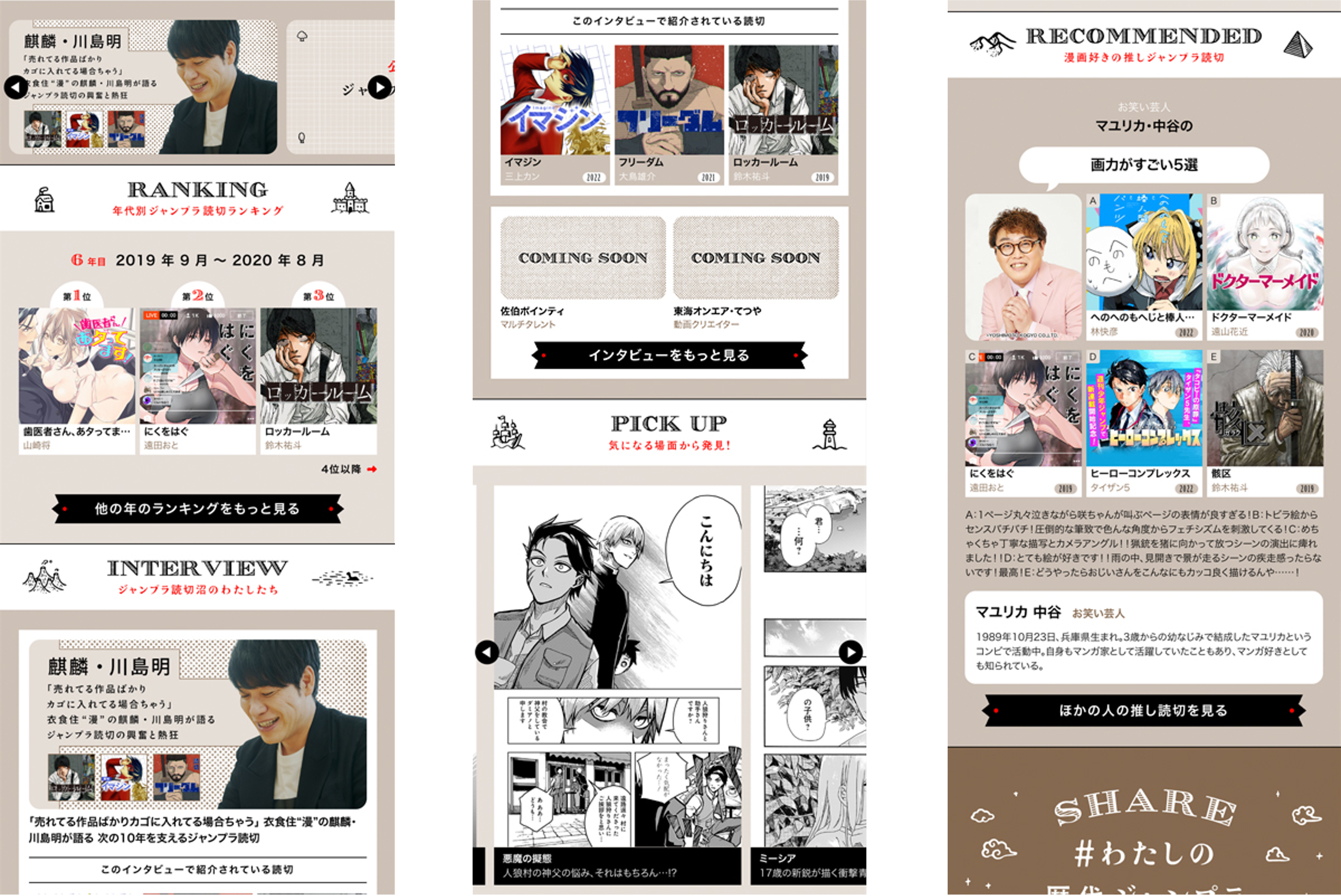 年代別ランキング、漫画好きインタビューや推し作品紹介を通じて、この10年で生まれた2,000を超えるジャンプラ読切の中からとっておきの作品との出会いをお届けします!
